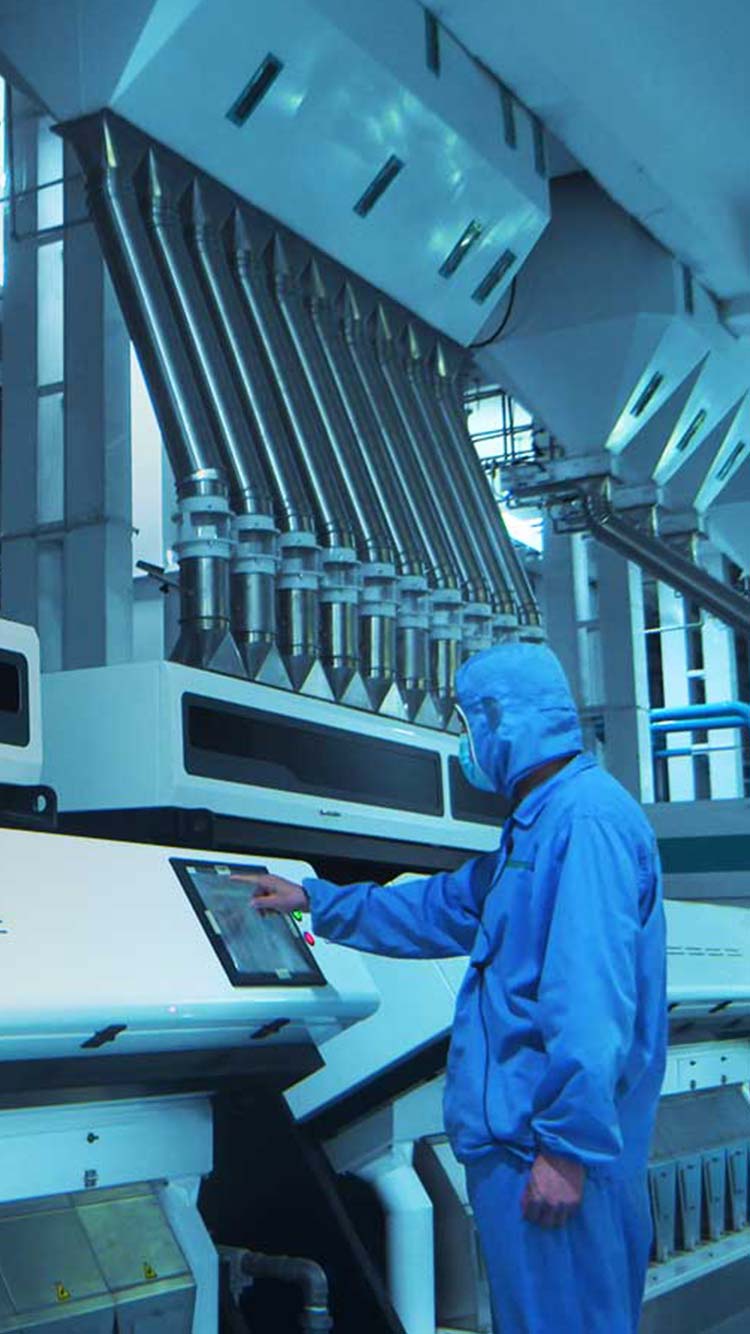 在生產加工環(huán)節(jié),采用國際先進生產線,每粒米都需歷經(jīng)碾、刷、拋、選全流程加工,輕磨輕拋,適度加工,最大保留米中營養(yǎng);國際先進雙紅外色選機,通過粒型、水分、色值等全方位篩選,保證大米品質;整個大米加工0接觸、0環(huán)節(jié),全部采用智能化管理,健康安心。